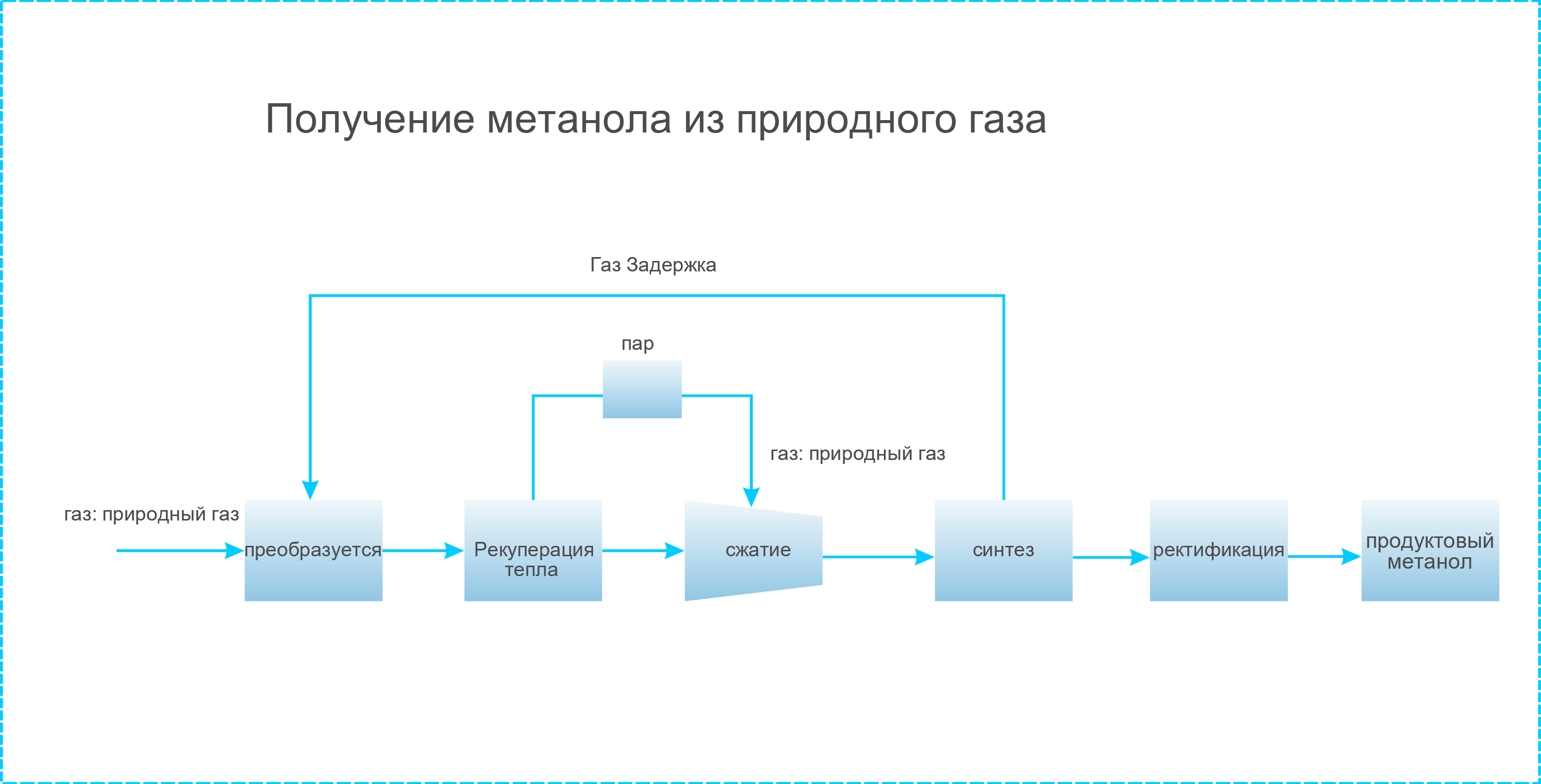 Используется новый тип колонны синтеза метанола с побочным продуктом - паром среднего давления, чтобы снизить энергопотребление.
